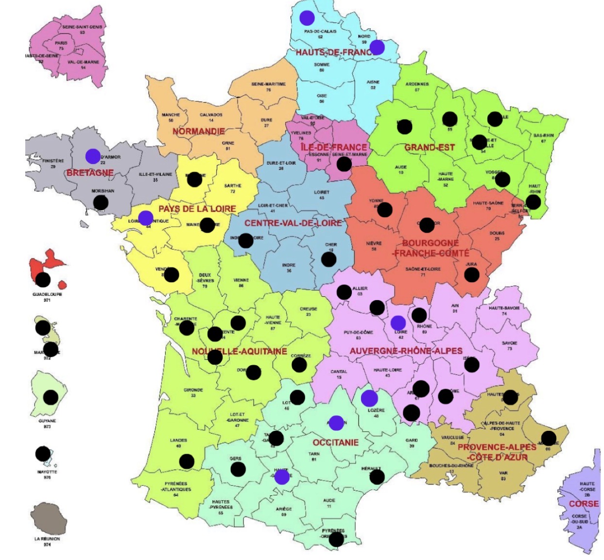 Carte de la répartition des associations